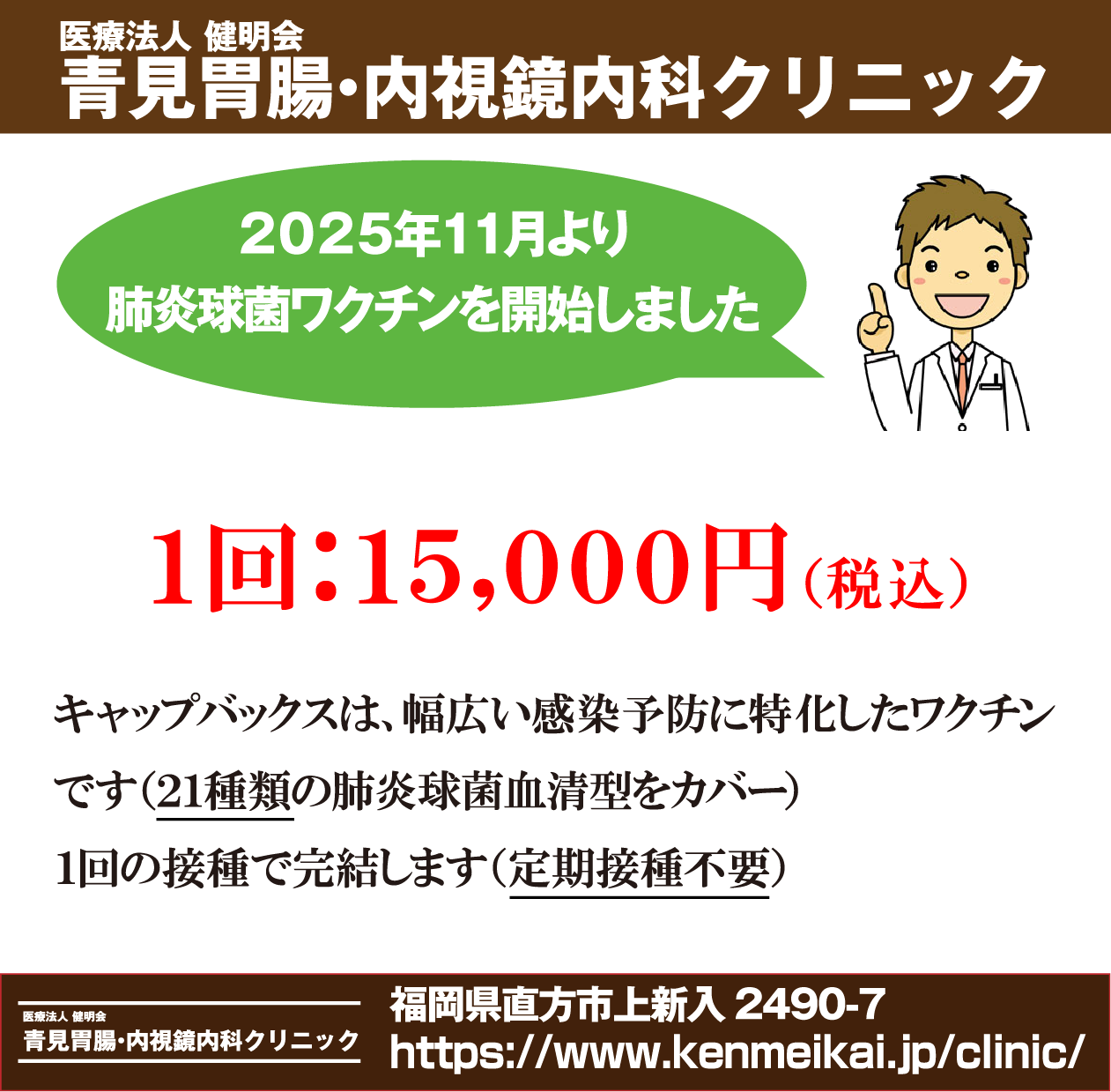 2025年11月より 新しい肺炎球菌ワクチンを開始しました
